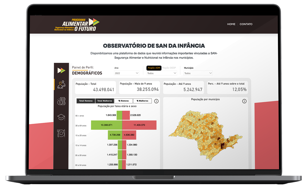 Atuar como um repositório de informações e um instrumento para a gestão e indução de políticas públicas voltadas à promoção da segurança alimentar e nutricional (SAN) das crianças, tanto no setor público quanto no privado, bem como ao fortalecimento do controle social. Além disso, busca ser uma fonte de informação acessível à população, pesquisadores e profissionais interessados na causa. A ferramenta também poderá ser utilizada para monitorar o progresso da SAN das crianças em todos os 645 municípios do Estado de São Paulo, contribuindo para a garantia do direito à alimentação adequada e saudável.